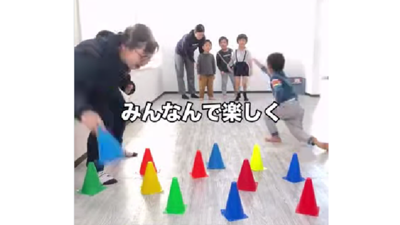 スタート位置のコーンからトランプゾーンに走っていき、トランプを1から順にめくり、全てめくれたらOK。