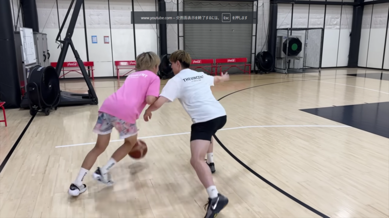 途中で急にドライブで仕掛けワンドリブル。