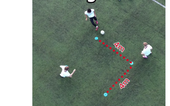 真ん中のマーカーで90度切り返しドリブル。