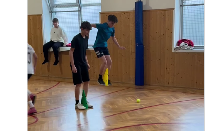 もう一人は、言われた色のコーンでボールをキャッチする。