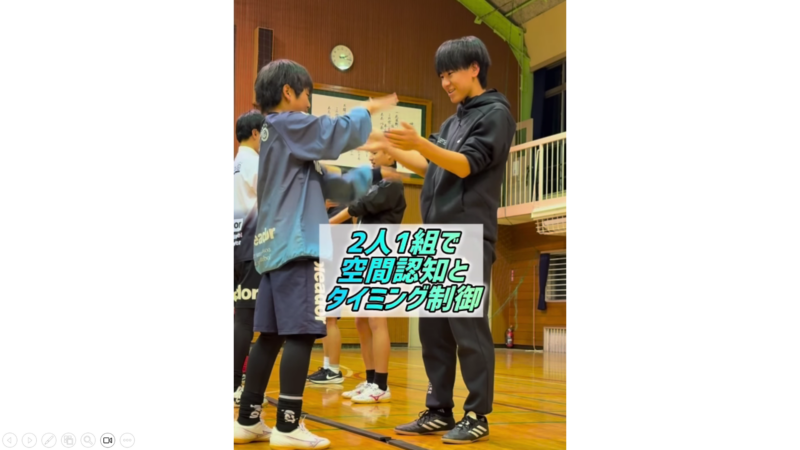 足で「グー、チョキ、パー、グー、チョキ、パー・・・」とジャンプさせる。