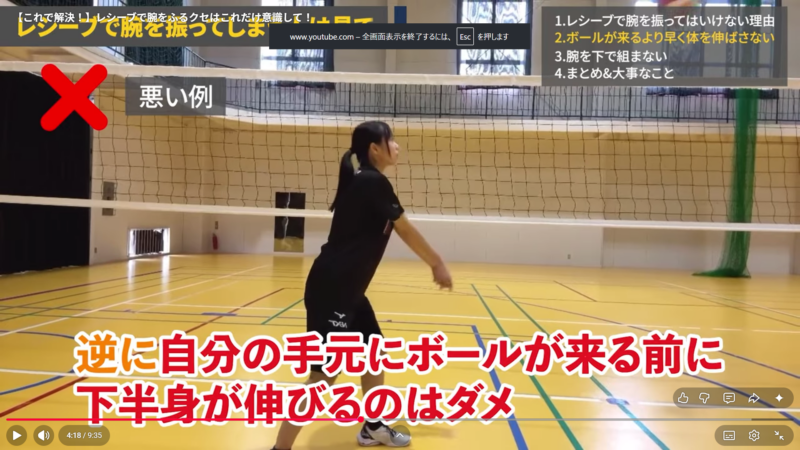 ・手はボールが来る位置に直接出す(組んでから振らない)