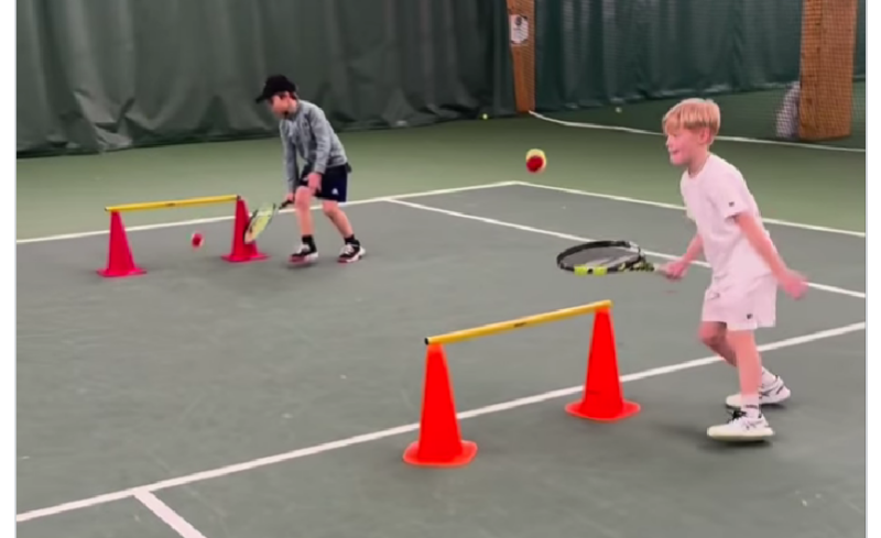 ラケットでボールを上に弾ませるのを10回。ラケット裏面でも同様にやったら、次の段階。